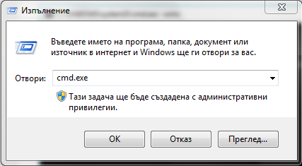 С помощта на клавиша Windows + R, отворете конзолата за изпълнение и въведете cmd.exe в полето Open: и натиснете Enter.