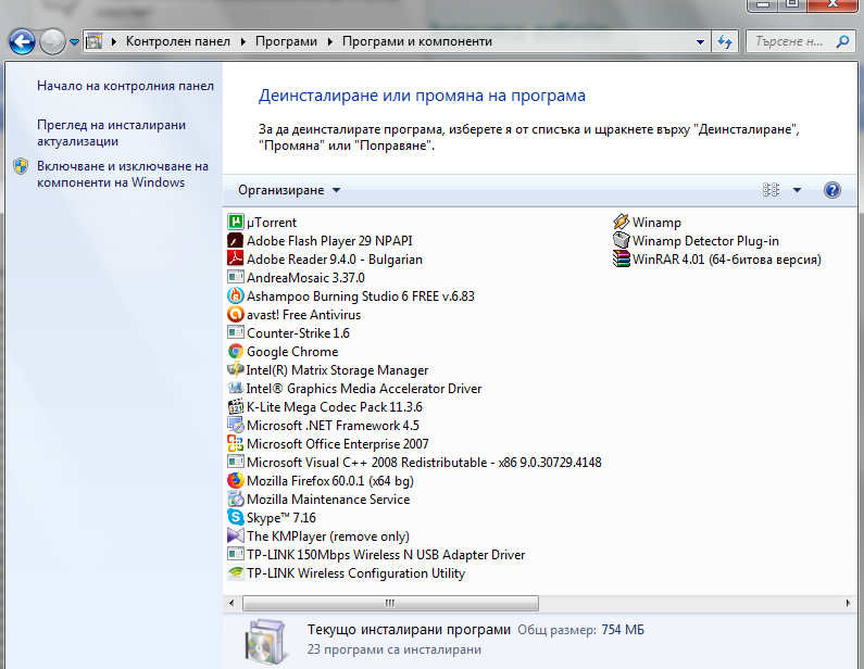3. Записване на инсталирани програми чрез използване на контролния панел