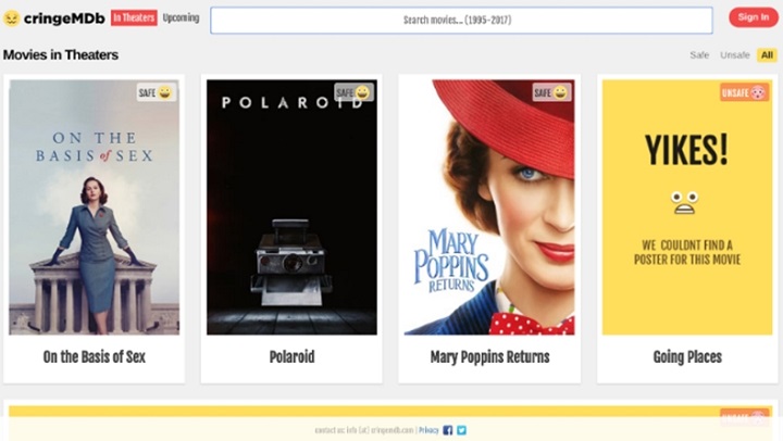 Намирането на добър филм не винаги е достатъчно. Също така е важно да се види дали филмът, който намирате, е подходящ за гледане с малки деца или със семейството. Вместо да гледате подробностите във филма, можете да посетите уебсайта на CringeMDb.