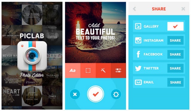 Приложението PicLab предлага малко по-балансиран вариант от приложенията, за които току-що говорихме. Тъй като има както опции за добавяне и редактиране на текст, така и опции като филтри, ефекти и рамки, които ви позволяват да редактирате снимките си. Разбира се, мога също така да кажа, че наличните шрифтове са сред най-красивите. Но дори и да е безплатно, да кажем, че на снимките ще има малко воден знак, ако не дадем $ 1.