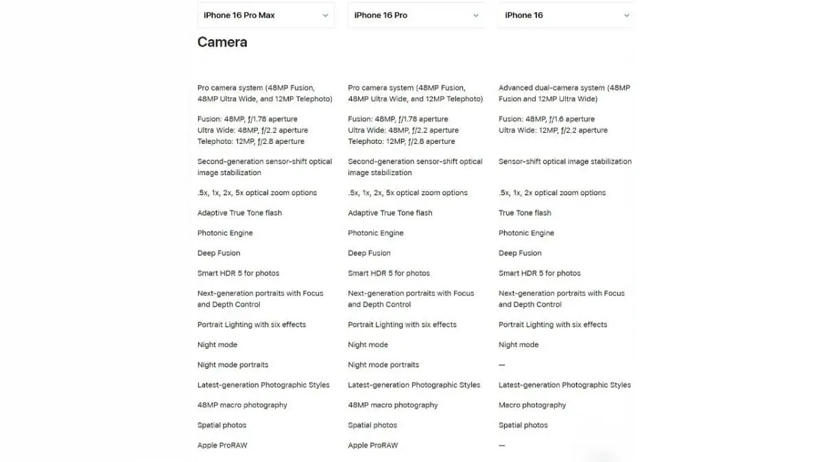Apple тайно премахна функцията на камерата на iPhone 16 от официалния уебсайт!
