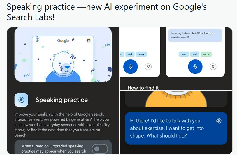 Google се готви да пусне новата си функция „Упражнение за говорене“, която ще направи ученето на английски по-лесно от всякога. Ако имате проблеми с практикуването на говорене на английски, без да сте директно лице в лице, Google се готви да предложи съвсем ново решение на този проблем чрез Search Labs.