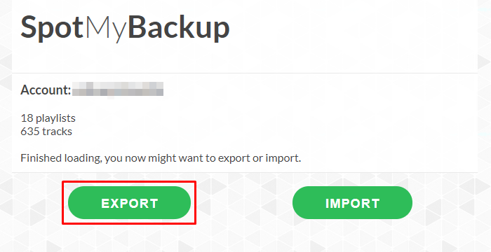 2.Песните и плейлистите ви ще започнат да се зареждат. След като инсталацията приключи, кликваме върху бутона за експортиране. Най-кратко време ще бъде изтеглено резервното копие на плейлиста с разширение .JSON. След като актуализирате плейлистите си, можете да повторите този процес и да запазите архива си настрана.