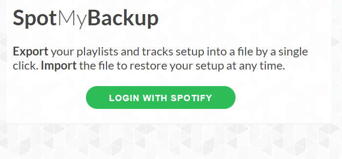 След като отворите услугата Spot MyBackup в браузъра си, кликнете върху бутона Login With Spotify.