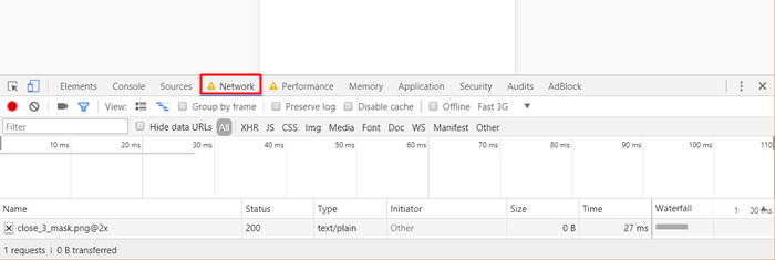 Първо отваряме нов раздел в Chrome и натиснете F12. Тази пряк път ще отвори Инструменти за програмисти. След това изберете „Мрежа“ от разделите.