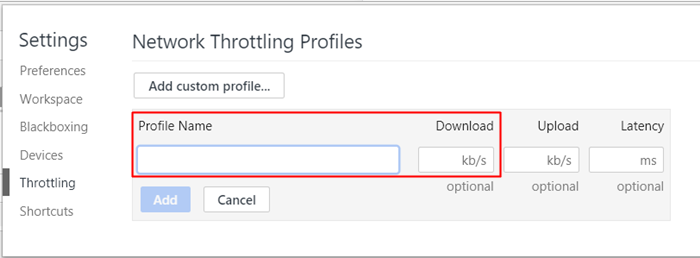 Първо, можете да въведете име в секцията Име на профил. След това можете да въведете ограничение на скоростта в KB / s в полето Изтегляне. Можете да оставите секциите „Качване и латентност“ празни. След като кликнете върху бутона Добавяне, ще се върнем към раздела Мрежа, който показахме в първата стъпка. Когато изберете профил, който току-що създадохме от раздела „Онлайн“, скоростта на изтегляне ще бъде ограничена от създадения от вас профил.
