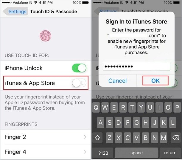 2. От телефона си отворете Настройки -> Настройки на докосване и парола (Touch ID).