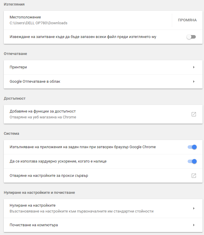 1. Промяна на местоположението за изтегляне по подразбиране