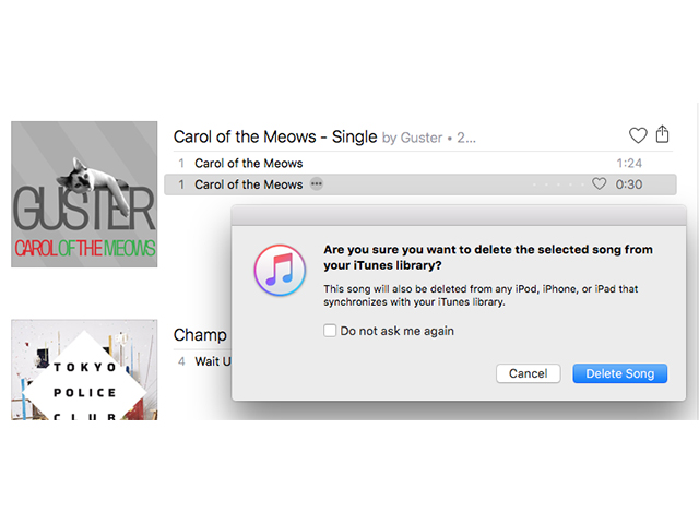 Натиснете назад към качи и изтриване на кратката версия на пистата. Когато се покаже подкана, изберете Съхранявайте на файла, за да се отстрани на пистата от фонотеката, докато го държи в твърдия диск.