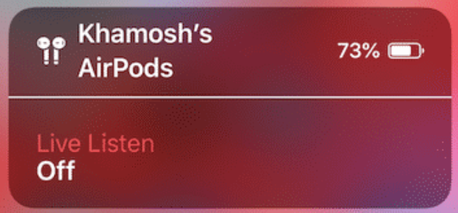 3. Докоснете иконата на слуха от Центъра за управление. В прозореца, който се показва, докоснете Live Listen, за да го включите.