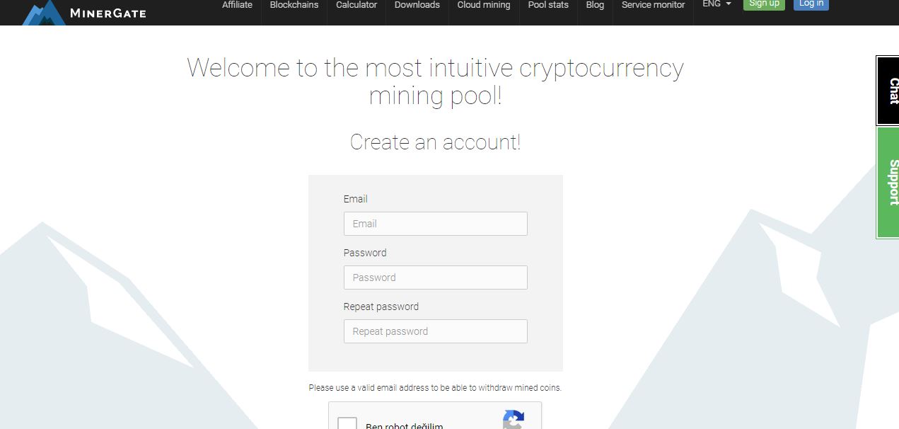 1. Преди всичко трябва да отидете на уеб сайта на Minergate и да извършите рутинния процес за членство.