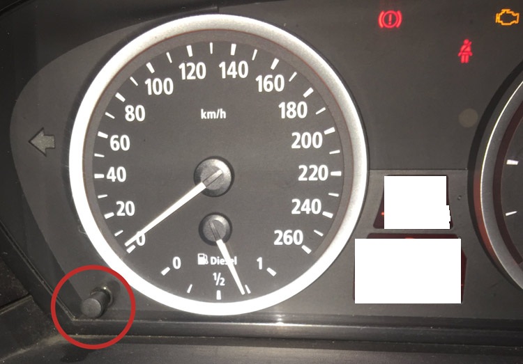 2. Натиснете и задръжте бутона за 5-6 секунди, са показани в червено със стрелка в долната част на скоростомера в снимката по-горе.
