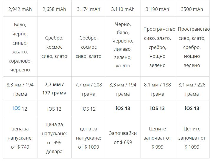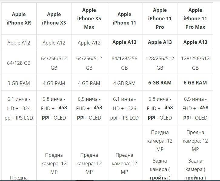 iPhone XR заменя iPhone 11 , iPhone XS заменя iPhone 11 Pro, а iPhone XS Max заменя iPhone 11 Pro Max , което ще ръководи новата стратегия за продажби на компанията. Но какви са разликите между тези модели, дали предишните модели могат да бъдат предпочитани или има смисъл да се надграждат? Нека разгледаме таблицата, която сравнява стари и нови модели iPhone :