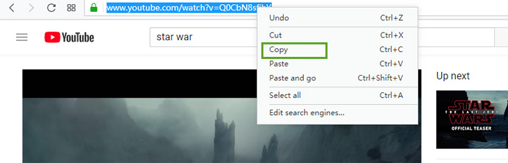- Отваряте прозореца за изтегляне, като щракнете върху URL адреса на YouTube на лентата с инструменти или върху иконата на YouTube в средата.