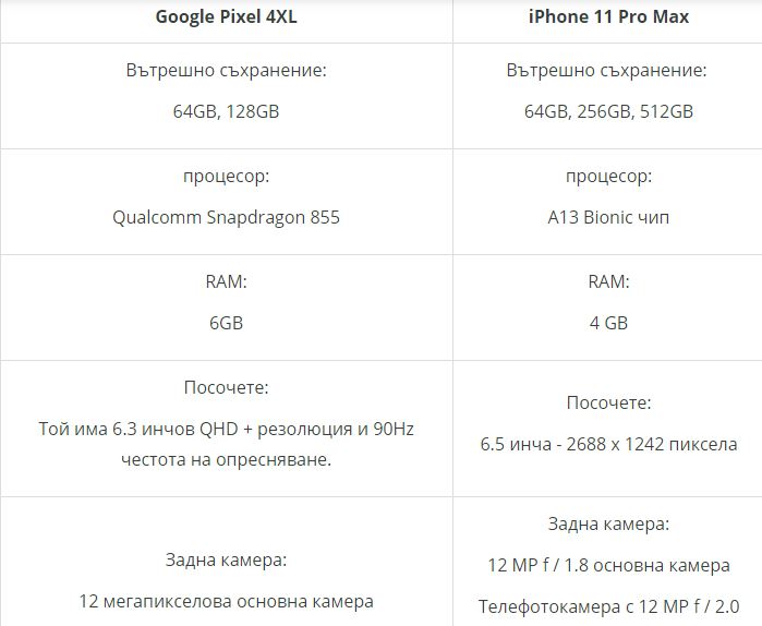 От гледна точка на цената, iPhone 11 Pro Max е по-скъп от Google Pixel 4XL.За съжаление, Google Pixel 4XL няма да бъде достъпен за продажба, тъй като у нас няма официален дистрибутор на Google. iPhone 11 Pro Max ще влезе в продажба.
