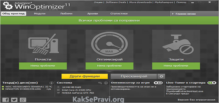 Инсталиране и регистрация на Ashampoo WinOptimizer v11