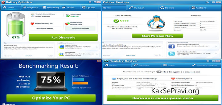 Инсталиране на ReviverSoft Software Pack Информация : ReviverSoft Software Pack включва комплект от 4 софтуерни приложения, които биха могли да бъдат много полезни и да оптимизират работата на вашия стационарен компютър или лаптоп. 1)...