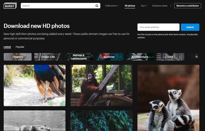 На платформата Burst, която предлага много изчерпателна библиотека с картини, имате достъп до хиляди ниско и висококачествени снимки. Ако имате нужда от незабавен достъп до изображенията, които са ви необходими за вашите проекти и проекти, е важно да добавите платформата Burst към вашите отметки.