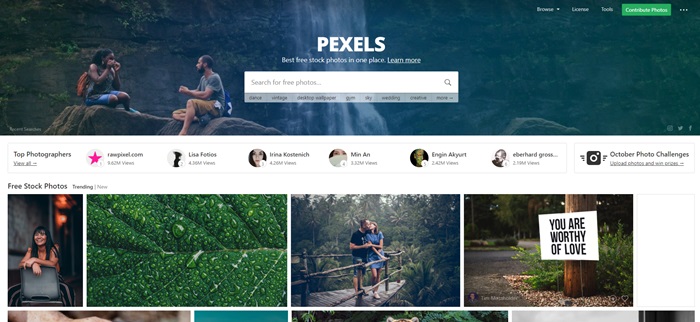 Служат от 2015 г. насам, платформата Pexels предлага творчески фотографии за използване в проектите на милиони дизайнери, писатели, художници, програмисти и други създатели на съдържание. Pexels, където можете да намерите и видеоклипове с високо качество, изглежда, че си струва да използвате.