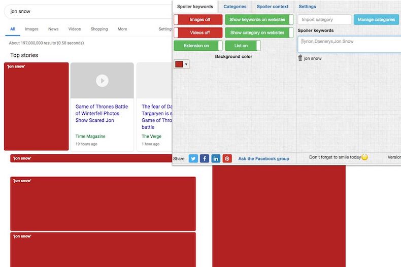 Игра на престоли е една от най-гледаните серии.Веднага след началото на новия сезон ще бъде издаден нов трейлър от епизодите и ще бъдат отворени заглавията на Играта на престоли – GoT в социалните медии.Това води до спойлери за Игра на престоли.Сезон, онези, които не гледат епизода на произволен спойлер споделят, бягат заради троловете. В този блог пост споделяме безплатни приставки, приложения, които зрителите на Game of Thrones трябва да използват, за да избегнат спойлери .